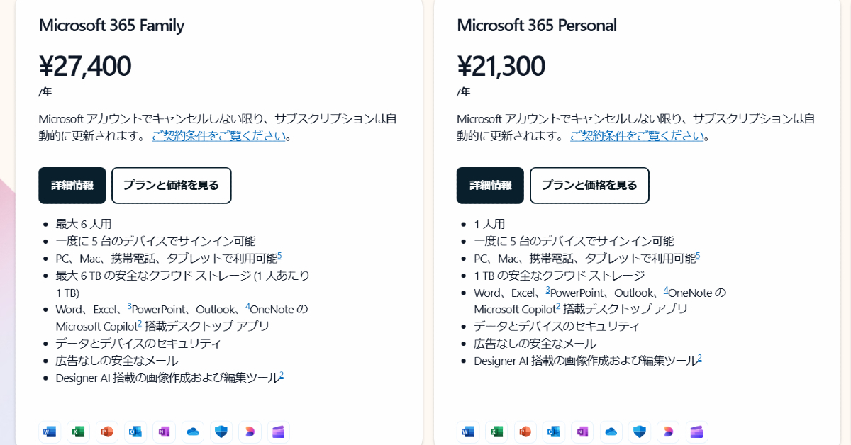 - 既に新価格になっており、日本では6400円値上げされ、Personalは年額2万1300円に、Familyは年額2万7400円になった(いずれも年額プランの場合)