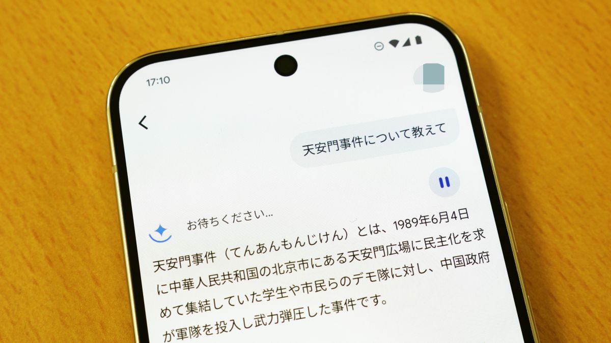 GeminiアプリにはAndroid版とiOS版が存在しており、どちらのバージョンにも「音声入力で質問する機能」が搭載されています。この音声入力機能を用いて天安門事件について質問すると、「回答が一瞬だけ表示されて消える」という現象が起きます。