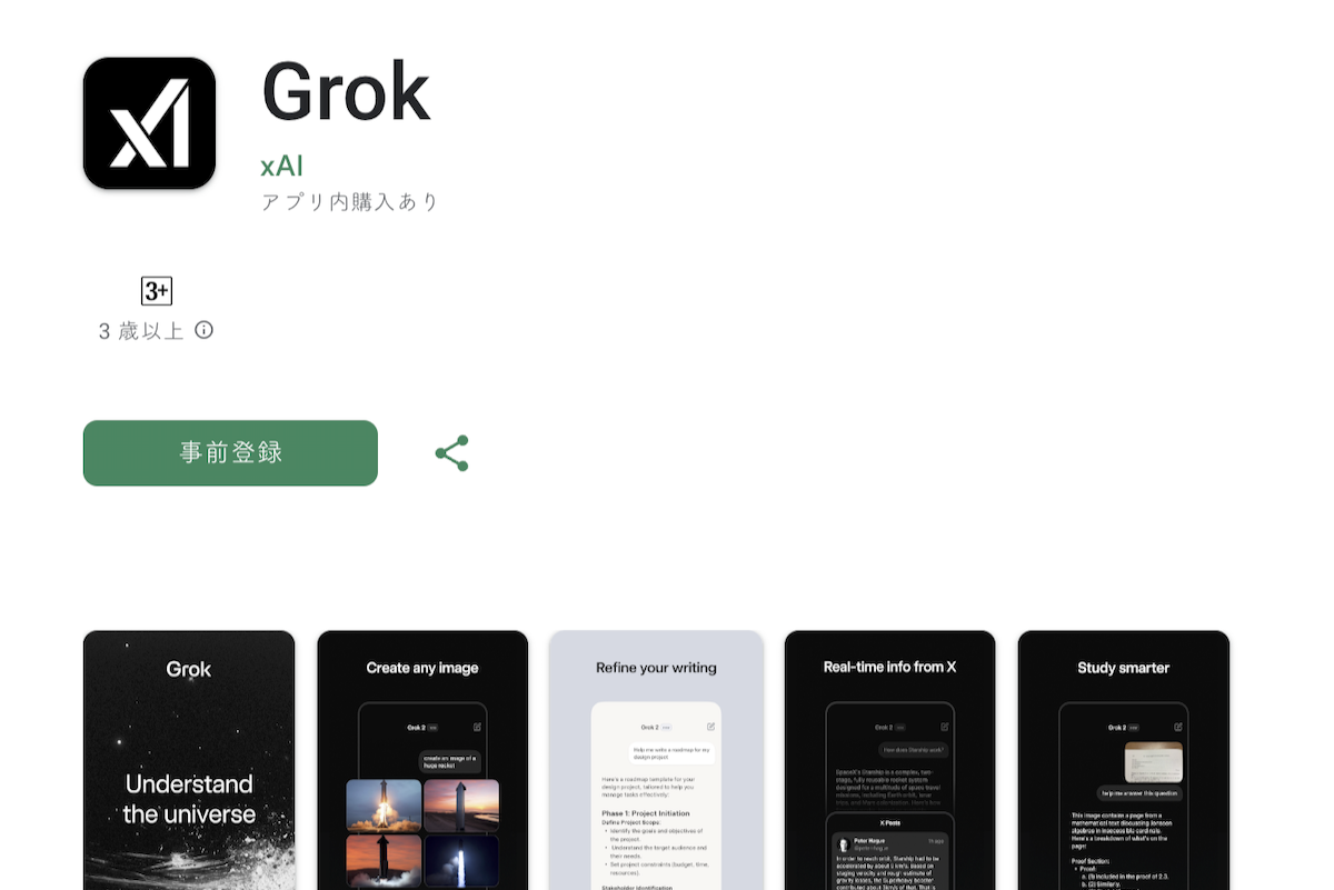 生成AI「Grok」を開発するxAIは2月4日、Android版Grokアプリの事前登録をGoogle Playで開始した。