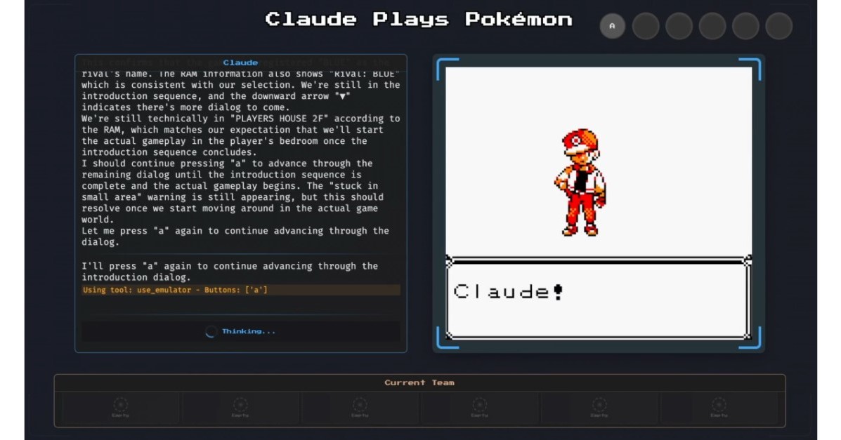 またAnthropicはベンチマークの一環として、Claude 3.7 Sonnetにポケモン赤をプレイさせた。同AIモデルはポケモン赤をプレイするために開発されたわけではないため、ゲーム画面内で主人公を移動させるための機能などを搭載。継続的にポケモン赤をプレイできるようにして、Claude 3.7 Sonnetの性能を検証した。