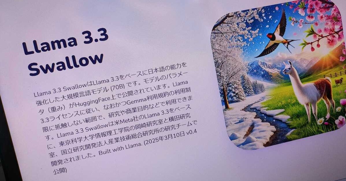 AIモデル「Llama 3.3 Swallow」、東京科学大などのチームが公開 日本語能力は「GPT-4oに迫る」