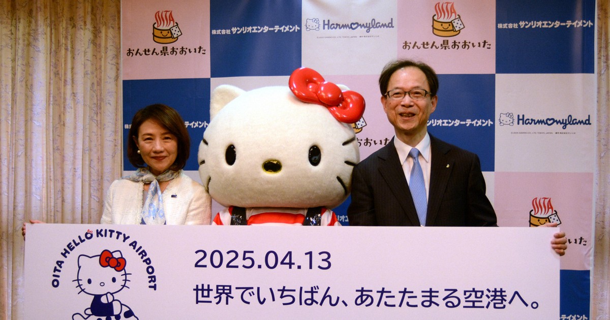 大分県などは17日、来月13日に開幕する大阪・関西万博の開催期間(10月13日まで)限定で、大分空港(同県国東市)の愛称を「大分ハローキティ空港」にすると発表した。人気キャラクター「ハローキティ」のライセンス元であるサンリオの子会社が県内でテーマパークを運営している縁で協力。