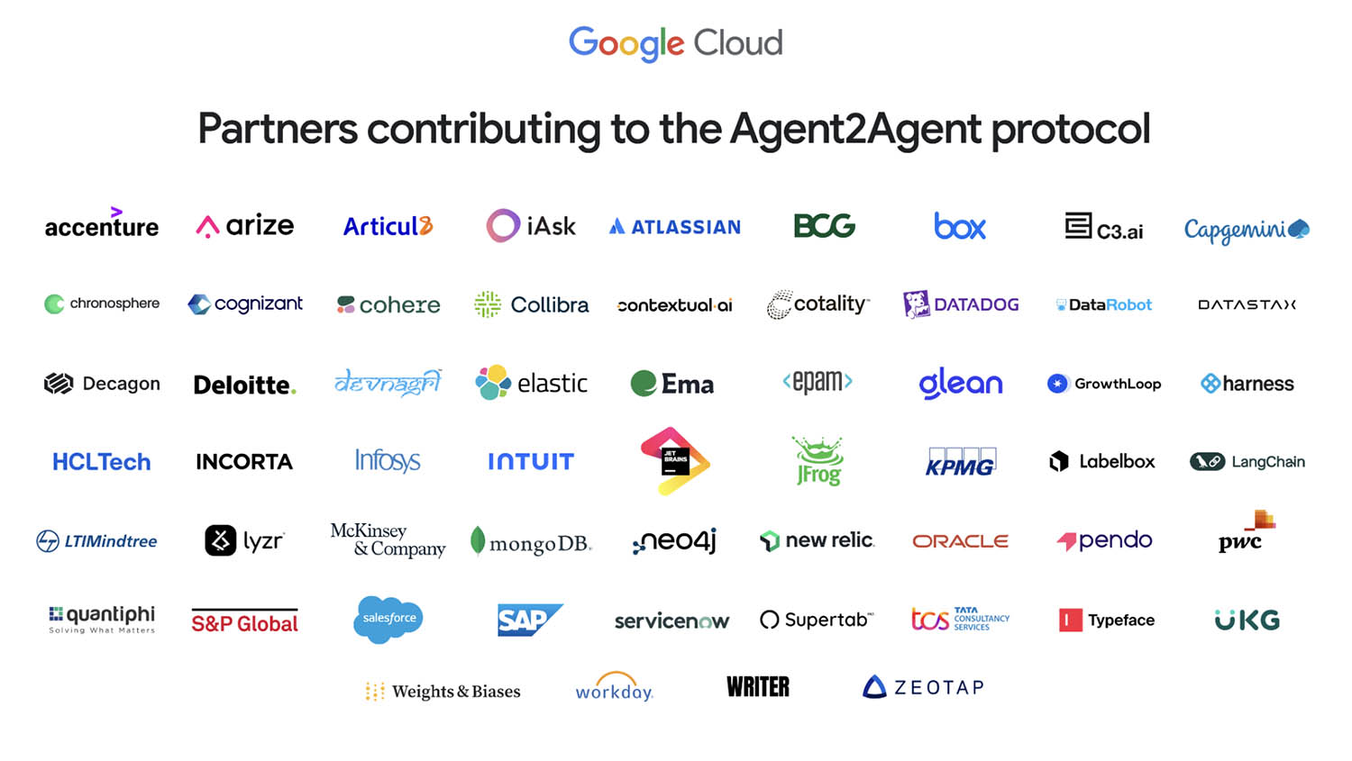 Googleは2025年4月9日(米国時間)に、AIエージェントの相互運用を実現する新しいオープンプロトコル「Agent2Agent(A2A)」を発表しました。このプロトコルには、アトラシアンやBox、Salesforce、SAPなど、50社以上のテクノロジー企業が賛同しています。