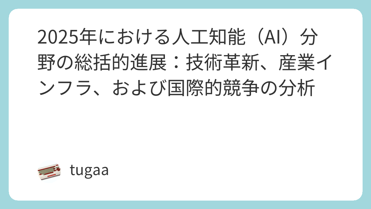 2025年は、人工知能(AI)の歴史において、単なる情報処理ツールから「自律的思考体」へと進化を遂げた極めて重要な年として位置付けられる。主要な商用ベンダーが推論能力を飛躍的に向上させたモデル群を投入する一方で、オープンソース・コミュニティは低コストかつ高効率な訓練手法を確立し、計算資源の民主化を加速させた。また、AIの物理的な基盤となるハードウェア領域では、5,000億ドル規模の巨大データセンター・プロジェクト「Stargate」が始動し、光子演算や脳型コンピューティングといった非従来型アーキテクチャが実用化の兆しを見せている。本報告書では、2025年の1年間を通じて観測されたAI分野の技術的、経済的、および地政学的な動向を、会社・プロジェクト別および時系列に沿って詳細に分析し、その第二、第三の波及効果について考察する。